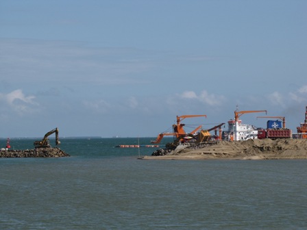 11月14日,湛江港霞山港區(qū)散貨碼頭護岸圍堰工程勝利合攏,為下一步施工奠定良好基礎(chǔ),同時掀起了全面施工的新高潮。