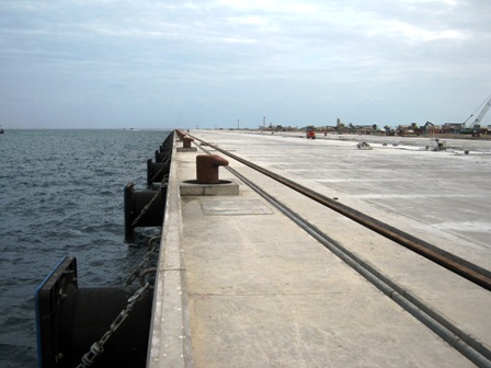 11月26日,蘇丹新集裝箱碼頭項目順利完成主體施工。到現(xiàn)場考察的中國駐蘇丹使館郝參贊和中港蘇丹辦事處人員對工程進展和施工質(zhì)量表示滿意。