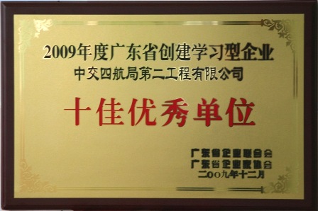 在2009年企業(yè)發(fā)展高峰會(huì)上,二公司榮獲"廣東省創(chuàng)建學(xué)習(xí)型企業(yè)十佳優(yōu)秀單位"稱號(hào),二公司黨委書記萬(wàn)軍杰榮獲"廣東省創(chuàng)建學(xué)習(xí)型企業(yè)十佳突出貢獻(xiàn)獎(jiǎng)"。