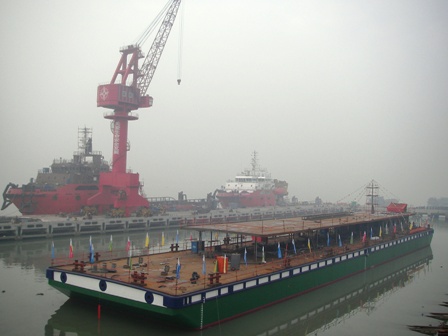 1月28日,航通公司為國(guó)內(nèi)某公司建造的3000t供油躉船在新會(huì)基地順利下水。此次下水首次采用滑道式下水架方式,標(biāo)志著航通公司造船水平又邁上一個(gè)新臺(tái)階。