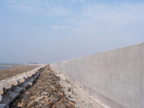 湛江鋼鐵基地項(xiàng)目部在施工中嚴(yán)格貫徹落實(shí)既定施工方案,尤其在模板投入方面始終堅(jiān)持"質(zhì)量為重、經(jīng)濟(jì)為輔"的管理理念,整個(gè)北護(hù)岸擋墻工程投入大型鋼模板2套,在施工中先后開(kāi)展典型施工、專(zhuān)題討論、技術(shù)改進(jìn)等活動(dòng),混凝土外觀(guān)質(zhì)量得到業(yè)主、質(zhì)監(jiān)站、監(jiān)理一致好評(píng)。