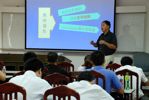 米金升介紹了《交通建設(shè)報(bào)》的定位、功能和發(fā)展方向,并結(jié)合具體案例,深入淺出地對(duì)新聞寫作的基本模式進(jìn)行指導(dǎo)。他鼓勵(lì)大家在寫稿時(shí)認(rèn)真思考,集中主題,突出亮點(diǎn),重視對(duì)細(xì)節(jié)、過程的描述,寫出更多、更好的新聞作品。陳喆教授結(jié)合《華南港工》報(bào)、《四航》雜志的實(shí)例作品講授了新聞攝影的認(rèn)知、技巧等。