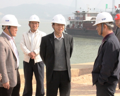 孫國強總經(jīng)理一行查看了項目部總營地施工現(xiàn)場情況,聽取了關(guān)于總營地、干塢施工生產(chǎn)進展情況以及下一步生產(chǎn)計劃的匯報,并對項目部前階段所作的工作給予肯定。孫國強總經(jīng)理指出,港珠澳大橋工程是國家重點工程,政治影響力大,集團內(nèi)參建兄弟單位多,該項目的實施對四航局來說是一場持久性的、比實力的馬拉松比賽;島隧工程建設(shè)對四航局的發(fā)展至關(guān)重要,將有利于推動四航局升級轉(zhuǎn)型、向智力密集型企業(yè)方向發(fā)展。他強調(diào),各級參建人員要高度重視,提高認識,進一步統(tǒng)一思想,特別要關(guān)注島隧工程項目技術(shù)支撐組織管理工作,加大對項目建設(shè)所涉及核心技術(shù)研究的力度,處理好前期干塢廠房建設(shè)與后期沉管預(yù)制施工有效結(jié)合的問題。他勉勵項目部全體員工迎難而上,勇挑重擔,全力以赴完成各項工作任務(wù)。