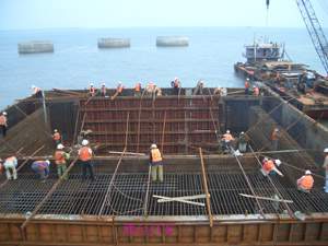 十多年來,中港四航局建設者們穩(wěn)扎廣西水工市場,誠信經(jīng)營、精心施工,以優(yōu)良的質量承建了防城港幾乎所有的大型碼頭共13座。這次四航局三公司承建的防城港20萬噸級過駁碼頭平臺,不但工期緊、施工技術要求高、難度大,而且由于外海作業(yè),風高浪急,施工環(huán)境和條件非常艱苦。但勤勞勇敢的四航人勇于創(chuàng)造國內港口建設最大圓筒施工新紀錄,敢于發(fā)揚"四海為家、開拓為志,信譽為上、團結為本"的四航精神,不斷戰(zhàn)勝困難,在祖國西南海疆的北部灣再一次奏響了四航人筑港的英雄樂章,為廣西、為華南港口建設打了一個漂亮的攻堅戰(zhàn)。