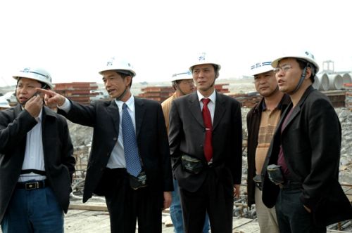 該工程合同工期三年半,需施打3425根大直徑鋼管樁和大量的樁內(nèi)嵌巖、錨錠施工,要完成碼頭基槽、駁岸區(qū)及港池航道挖泥2000多萬立方米,施工技術標準以英國標準為主。項目部按照集團和局領導安全、優(yōu)質(zhì)、高效地按期完成施工任務的要求,制訂了"講誠信、講和諧、創(chuàng)效益、創(chuàng)品牌"的工作目標和措施,高效配置資源,嚴密組織,精心施工。自去年3月1日開工至今,完成了三分之一的鋼管樁施打、四分之一的挖泥施工和400米碼頭縱橫梁澆注,其它工序也按計劃進行,形成了1000多米的流水作業(yè)線,完成施工產(chǎn)值5.8億元?,F(xiàn)在,項目部全體員工士氣高昂,決心為企業(yè)發(fā)展做出更大貢獻!圖為副局長羅寬榮、中港副總經(jīng)理莫文賀到現(xiàn)場慰問員工、指導工作。