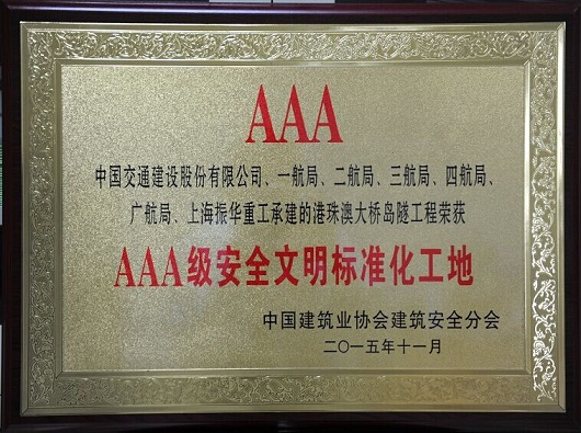 港珠澳大橋島隧工程榮獲2015年全國"AAA級安全文明標(biāo)準(zhǔn)化工地"