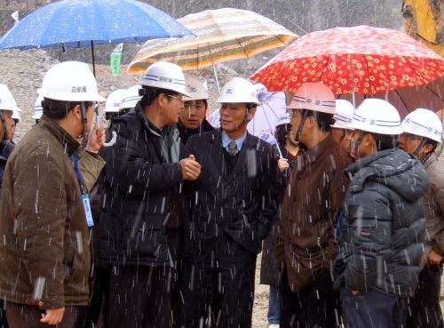 2月16日,中交集團(tuán)副總裁侯金龍等領(lǐng)導(dǎo),在副局長(zhǎng)羅寬榮、局長(zhǎng)助理劉文華等人陪同下,冒著鵝毛大雪到一公司湖北滬蓉西(恩施至利川)高速公路項(xiàng)目檢查指導(dǎo)。侯副總裁高度評(píng)價(jià)該項(xiàng)目進(jìn)場(chǎng)快、進(jìn)度快、開(kāi)工快,人員到位、設(shè)備到位、材料到位、后勤到位。