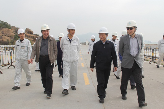 陳奮健一行察看了島隧工程東西人工島、沉管隧道施工現(xiàn)場和桂山沉管預制廠,聽取了工程整體進展情況、人工島主體建筑、曲線段沉管預制安裝、深水沉管接頭技術等專題匯報,對項目各項工作的開展進行了全面考察。