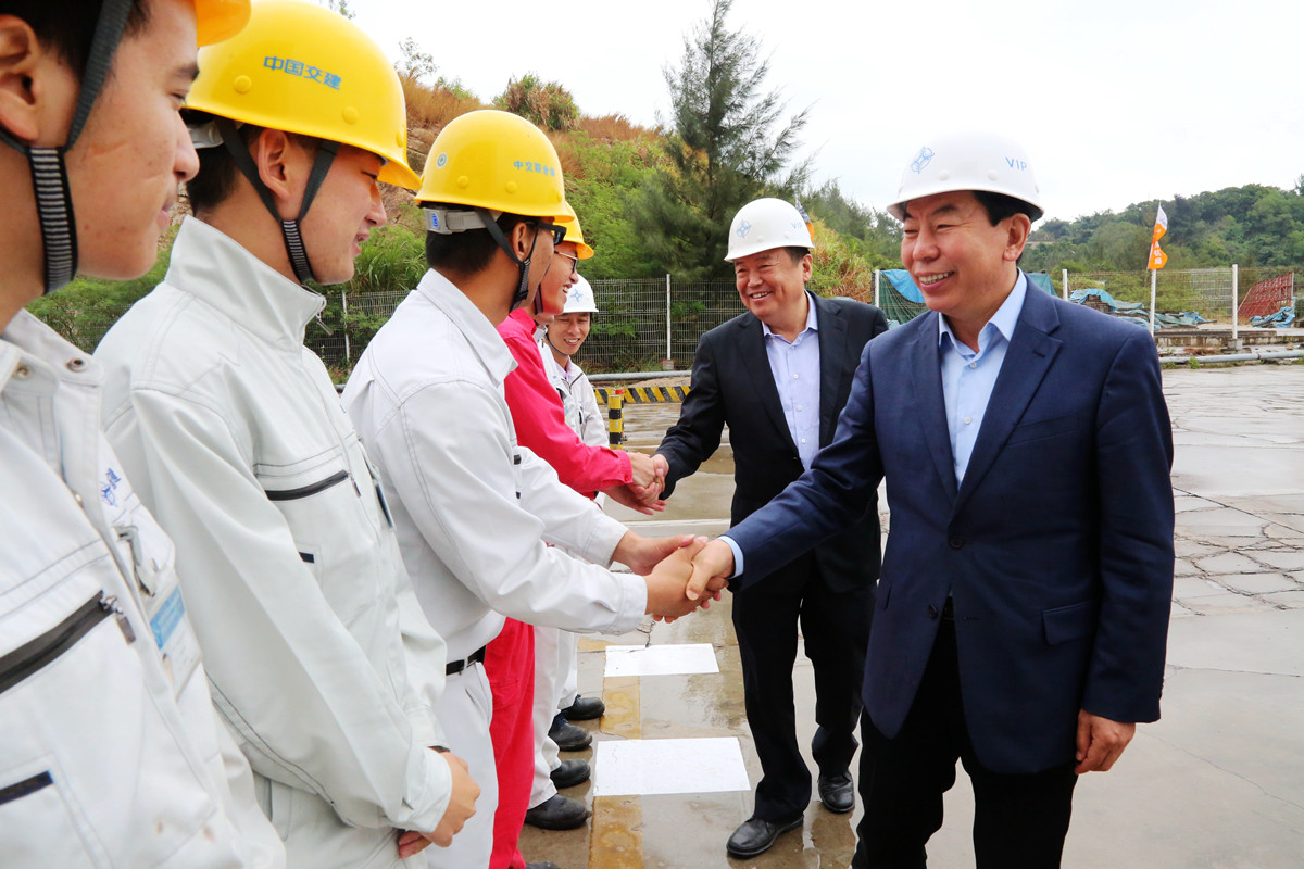 11月10日,國務院國資委副主任、黨委副書記張喜武一行到港珠澳大橋島隧工程項目調(diào)研。中國交建董事長、黨委書記劉起濤陪同調(diào)研,并介紹了中國交建依靠全產(chǎn)業(yè)鏈優(yōu)勢建設港珠澳大橋、服務“一帶一路”戰(zhàn)略的情況。