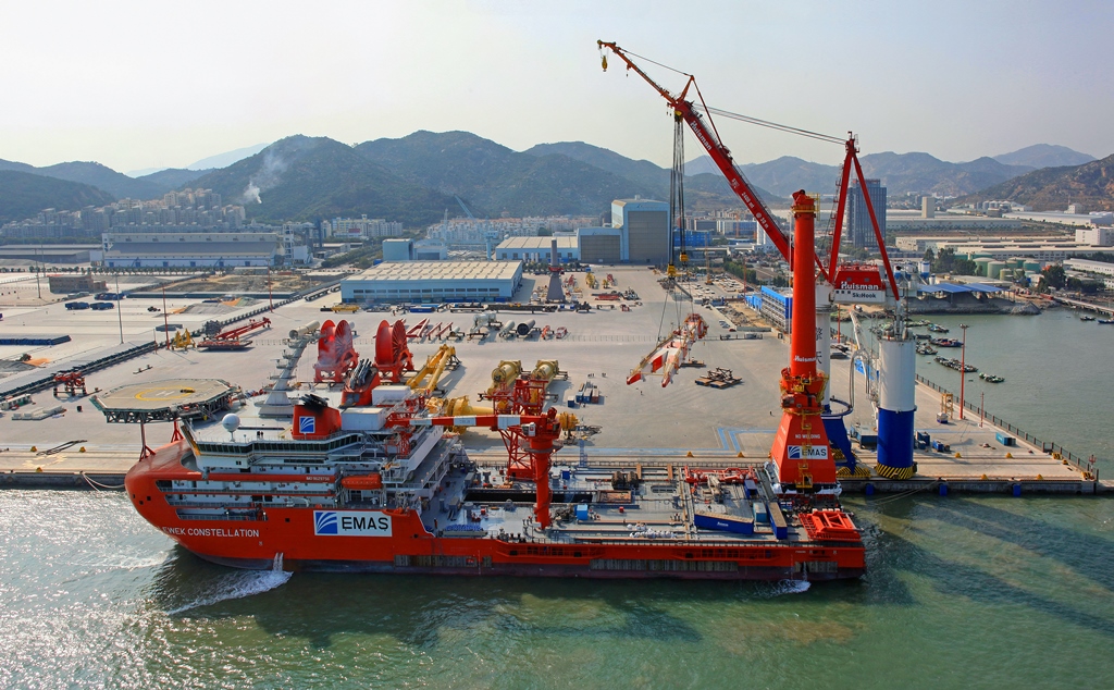該碼頭配備了有“亞洲第一吊”之稱,起吊能力達(dá)2400噸的移動(dòng)式高空吊,吊機(jī)在移動(dòng)行走時(shí)裝配荷載大大超過(guò)常規(guī),這對(duì)碼頭施工水準(zhǔn)是一大挑戰(zhàn)。