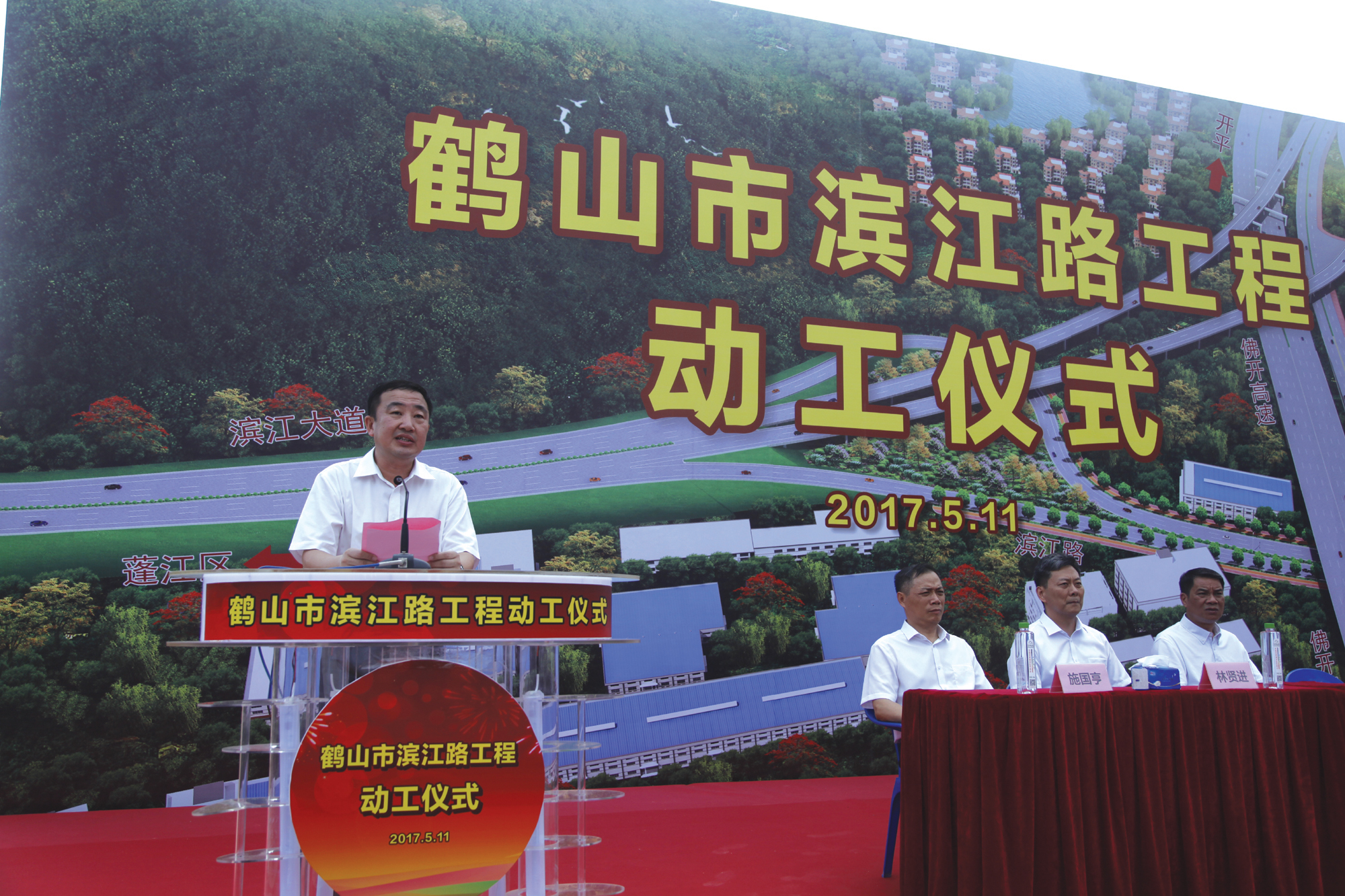 5月11日,四航局董事長、黨委書記梁卓仁出席鶴山市濱江路工程動工儀式。鶴山市委書記伍培進(jìn)、市長林賢進(jìn)等領(lǐng)導(dǎo)參加儀式。