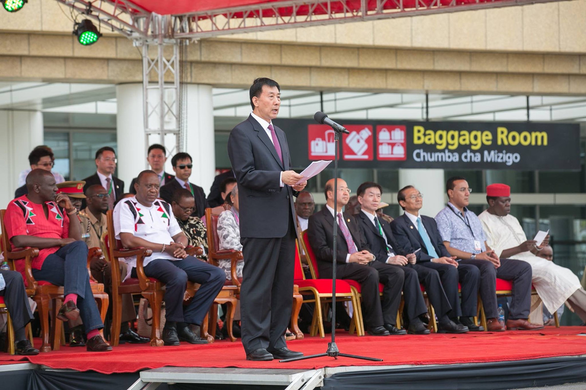 當(dāng)?shù)貢r(shí)間5月31日,肯尼亞百年來(lái)首條新建鐵路——蒙巴薩至內(nèi)羅畢標(biāo)軌鐵路實(shí)現(xiàn)通車。中國(guó)國(guó)家主席習(xí)近平特使、國(guó)務(wù)委員王勇受肯尼亞總統(tǒng)胡魯•肯雅塔邀請(qǐng)對(duì)肯尼亞進(jìn)行友好訪問(wèn),并參加了通車儀式。中國(guó)駐肯尼亞大使劉顯法,中國(guó)交建總裁陳奮健、副總裁陳云、副總裁宋海良,四航局董事長(zhǎng)、黨委書記梁卓仁等參加通車儀式。來(lái)自肯尼亞政府、中國(guó)駐肯尼亞大使館和中國(guó)交建的數(shù)百名嘉賓及當(dāng)?shù)厣锨癖婟R聚蒙巴薩西站,見證這一歷史性時(shí)刻。