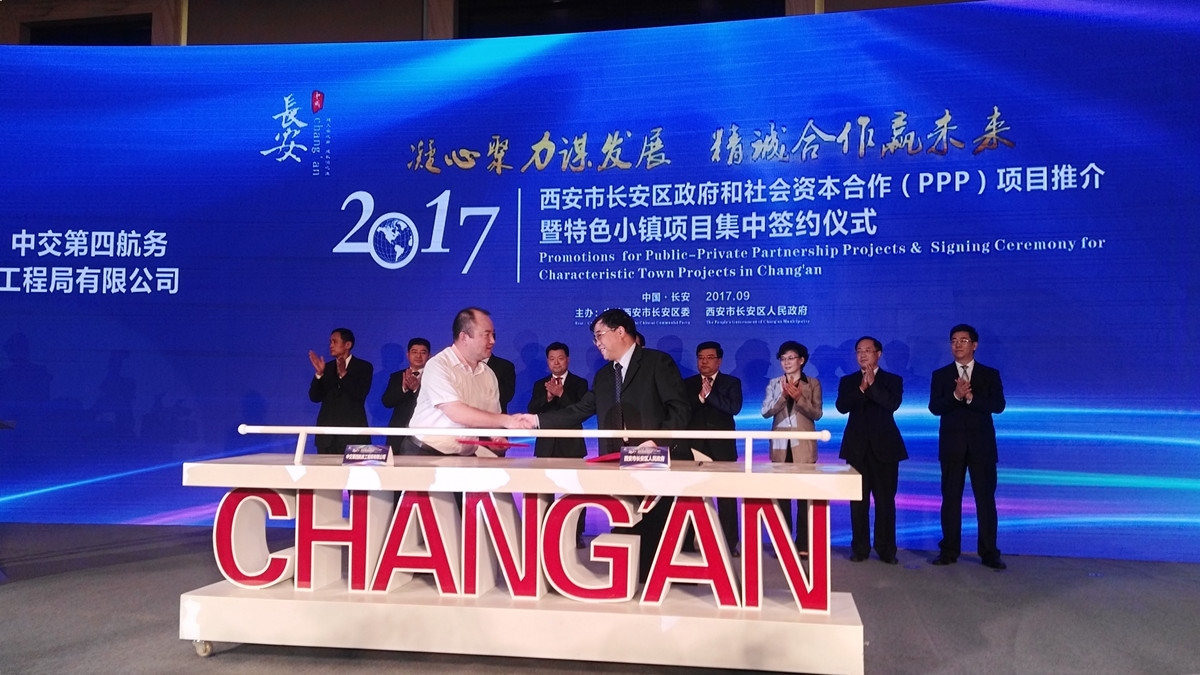 9月24日,“2017年西安市長安區(qū)政府和社會資本合作(PPP)項(xiàng)目推介暨特色小鎮(zhèn)項(xiàng)目集中簽約儀式”在西安舉行,四航局副總經(jīng)理、總法律顧問萬軍杰代表四航局出席會議,并簽訂一項(xiàng)戰(zhàn)略合作協(xié)議。