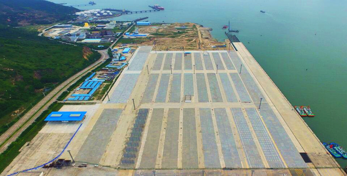 該工程2號(hào)泊位為5萬噸級(jí)集裝箱碼頭工程,結(jié)構(gòu)分為3個(gè)分段,岸線長205.92米,寬42.2米;3號(hào)泊位為5萬噸級(jí)集裝箱碼頭工程,結(jié)構(gòu)共分為5個(gè)分段,岸線長343.2米,寬42.2米;道路堆場(chǎng)及公用設(shè)施工程(第一階段)包括后方相對(duì)應(yīng)的H區(qū)、I區(qū)、J區(qū)的配套設(shè)施,道路堆場(chǎng)總面積25.37萬平方米。