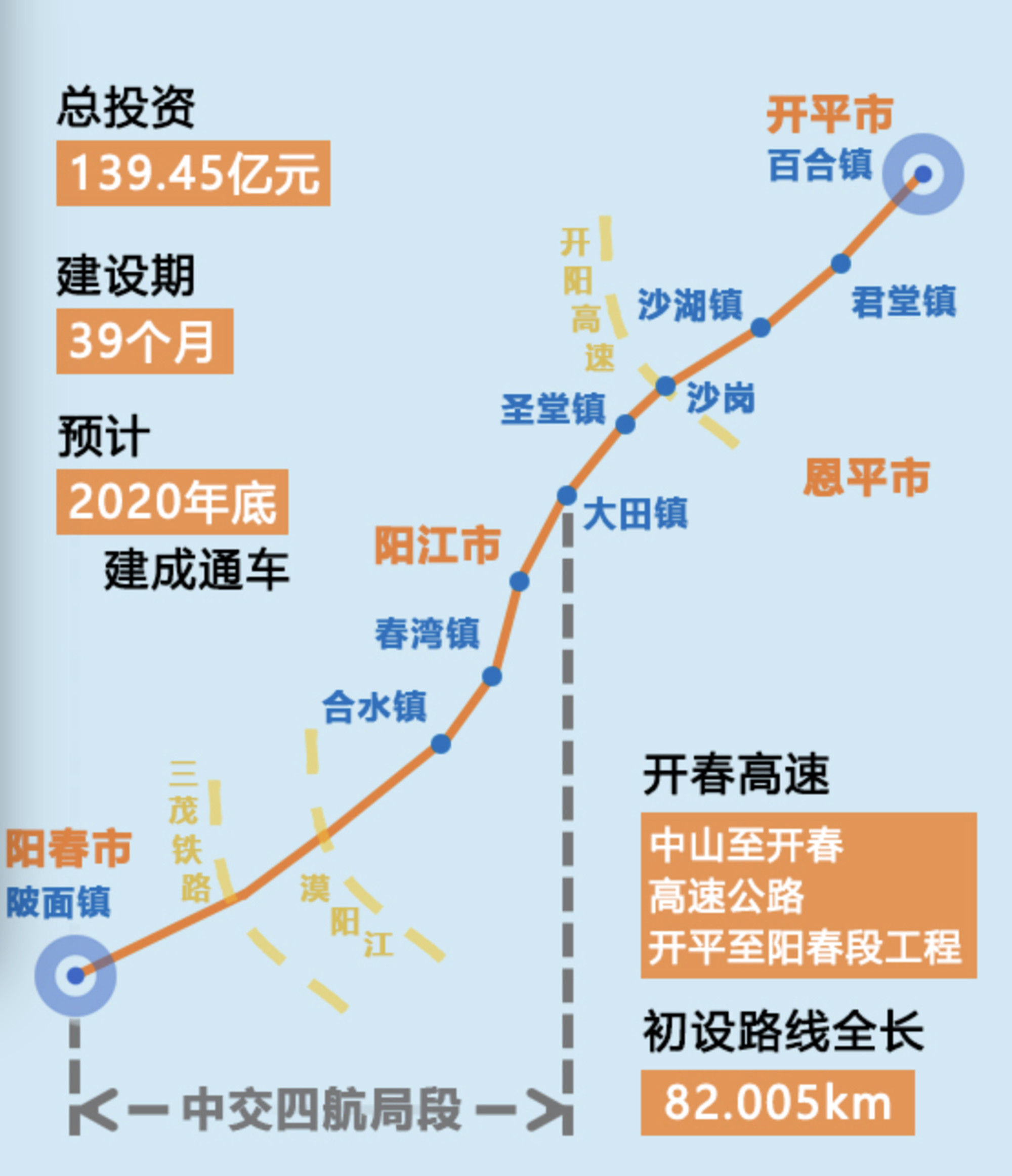 開春高速公路項(xiàng)目全長83公里,設(shè)計(jì)時(shí)速為120公里,采用“BOT+EPC+政府補(bǔ)助”模式,由中交四航局與中交路建按7:3比例投資建設(shè),項(xiàng)目建設(shè)期4年,預(yù)計(jì)2020年底建成通車。其中,四航局EPC總包部承建自恩平市大田鎮(zhèn)至陽春市陂面鎮(zhèn)路段,與在建的云湛高速公路相接,全長約51公里。