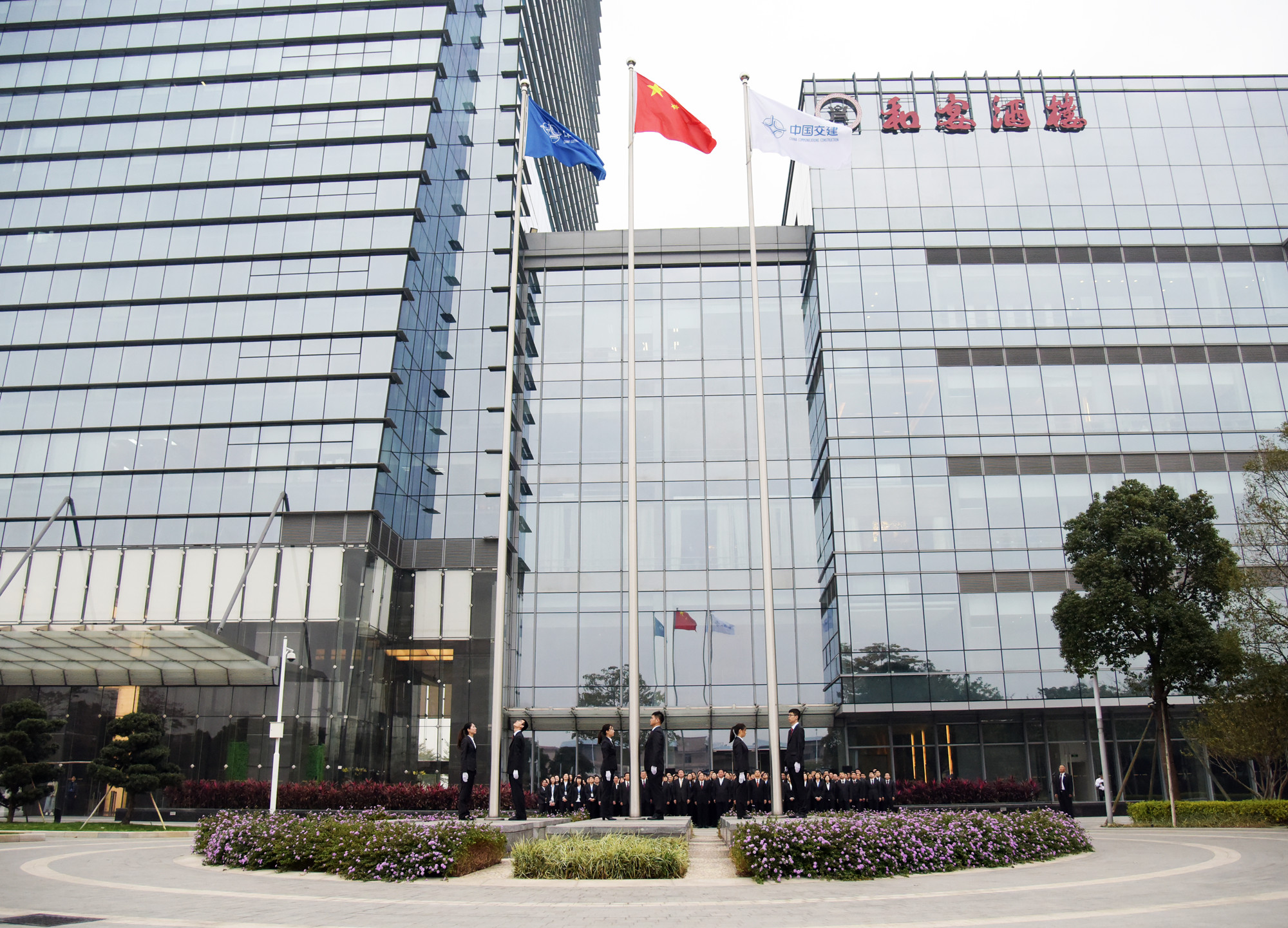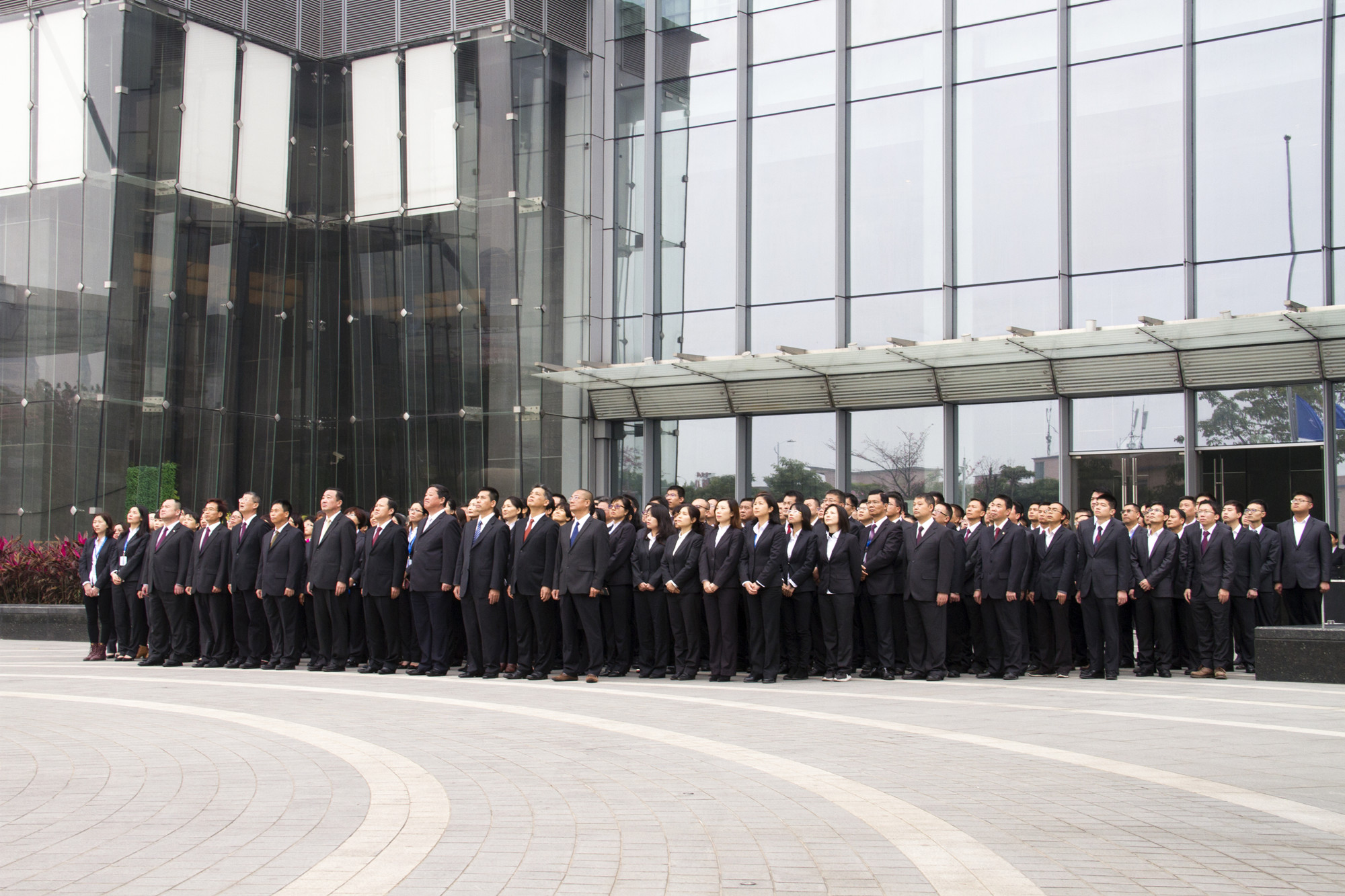 伴隨著《國歌》、《四航之歌》的鏗鏘旋律,五星紅旗和中國交建司旗在6名旗手的護(hù)衛(wèi)下冉冉升起。本部全體員工肅立仰望,向五星紅旗和中國交建司旗行注目禮,自豪和神圣感油然而生。