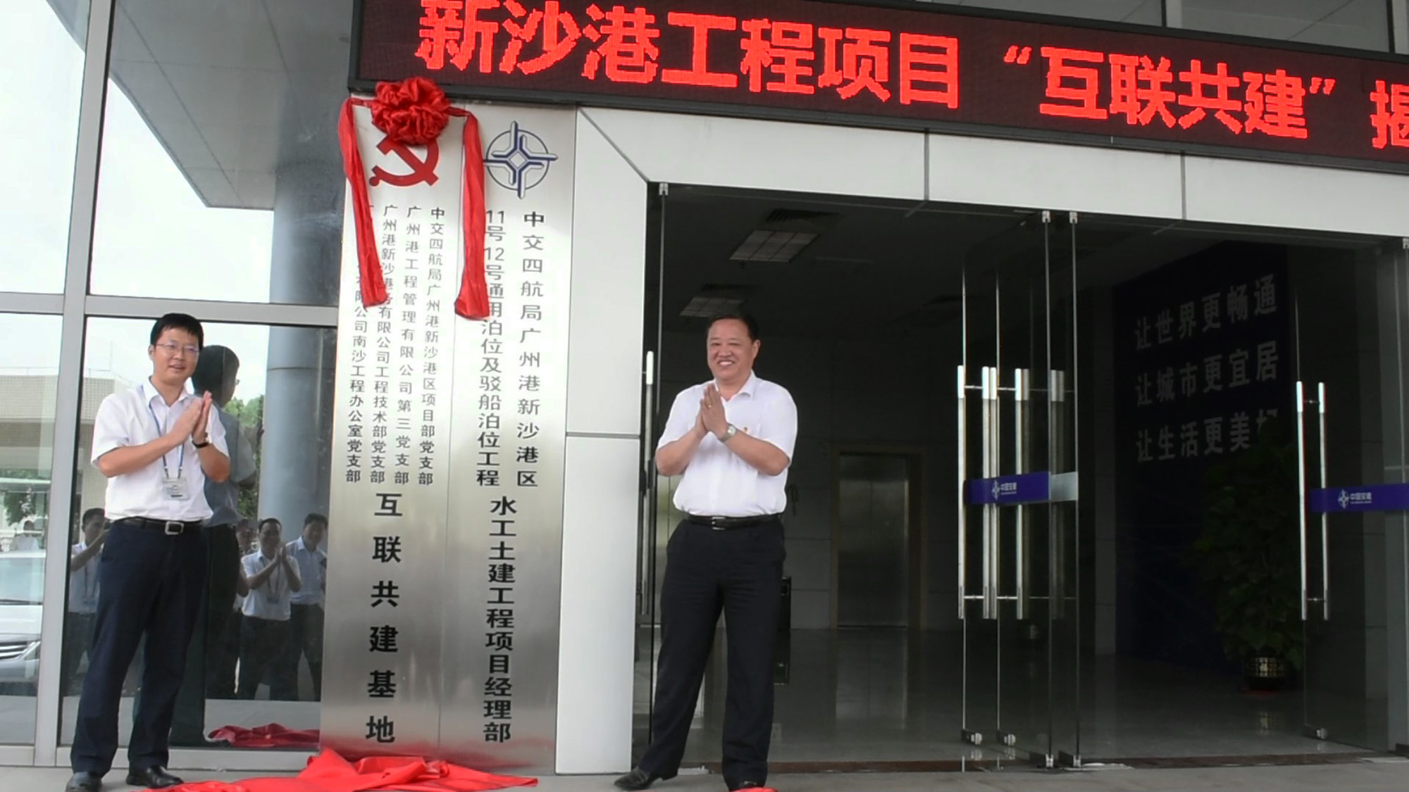 為更好的服務(wù)和推進(jìn)廣州港新沙港區(qū)二期項(xiàng)目管理,在項(xiàng)目參建各方的積極推動下, 9月18日,四航局新沙港項(xiàng)目黨支部、廣州港股份南沙工程辦公室黨支部、新沙港工程技術(shù)部黨支部、廣州港工程管理公司第三黨支部四方黨建“互聯(lián)共建”活動簽約揭牌儀式在四航局廣州港新沙港區(qū)項(xiàng)目部順利舉行。四航局黨委副書記張猛、廣州港股份有限公司黨委書記宋小明出席儀式并講話。