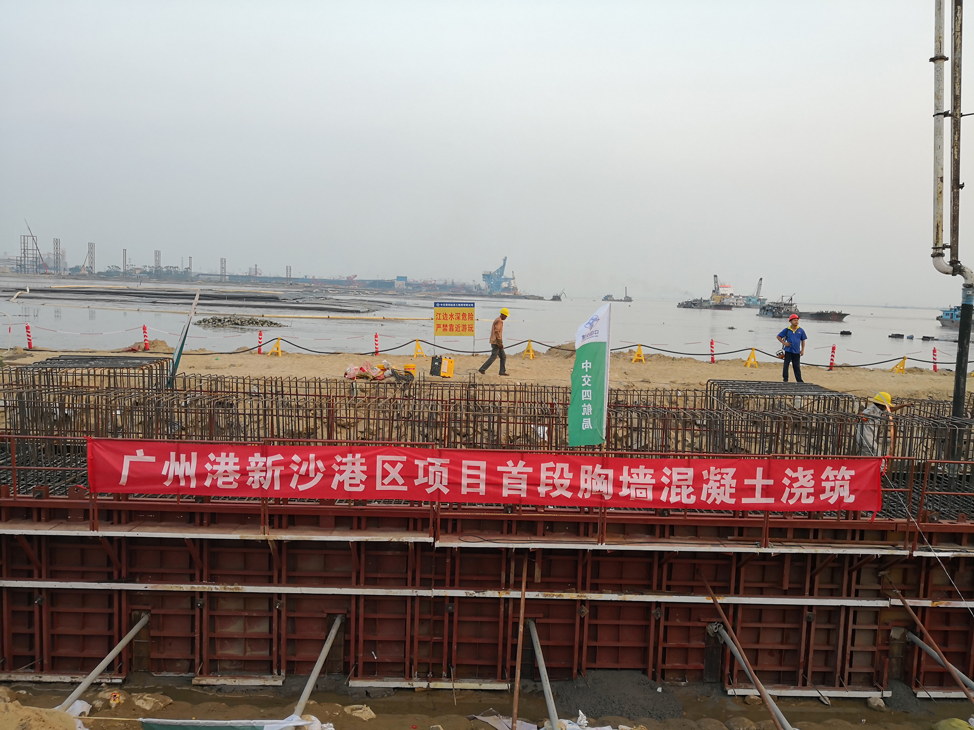 10月7日,四航局廣州港新沙港區(qū)11號、12號通用泊位及駁船泊位工程完成碼頭上部結(jié)構(gòu)首段胸墻混凝土澆筑,標志著項目碼頭上部結(jié)構(gòu)全面開工,比原計劃開工日期提前近100天。