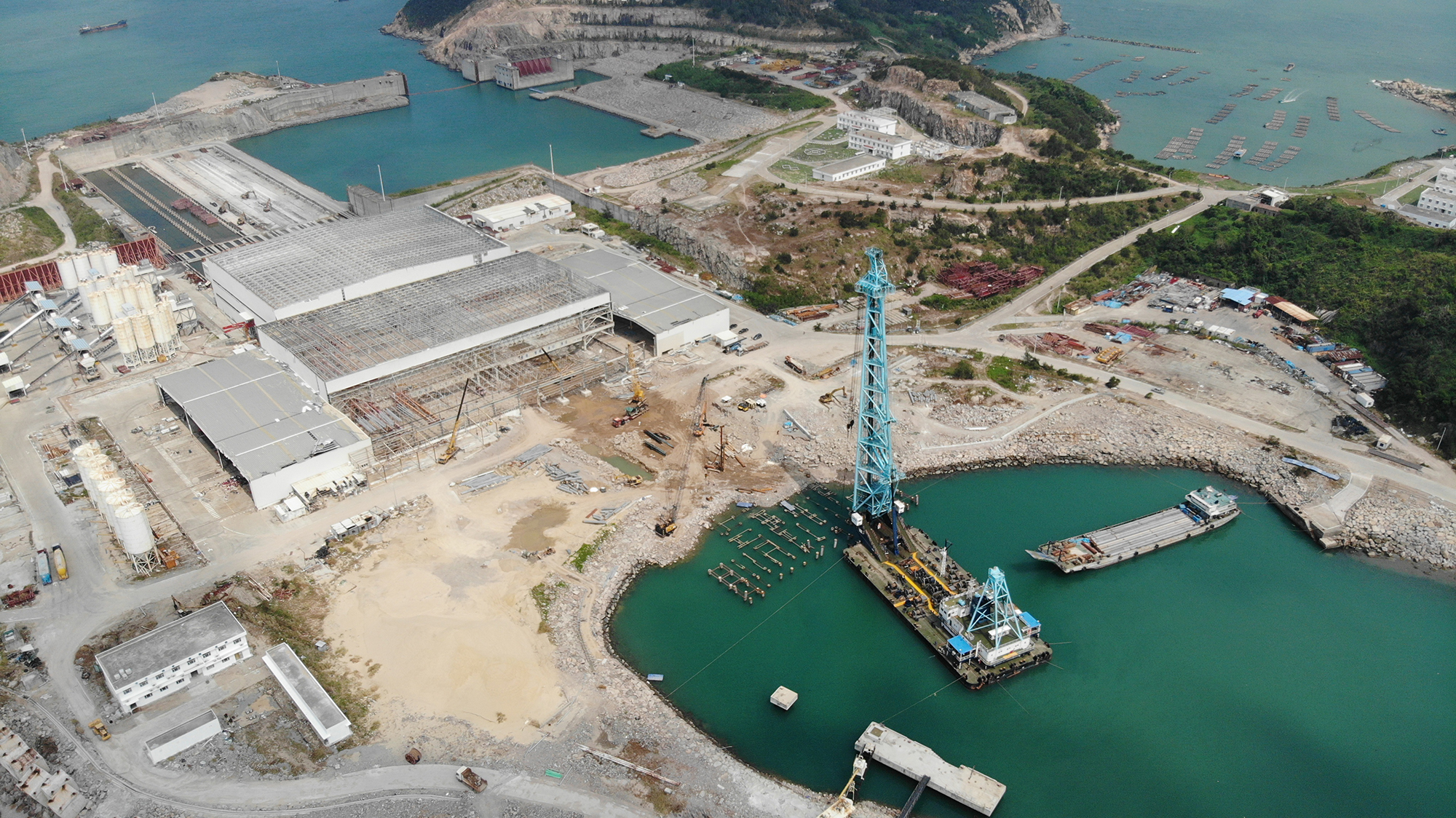 海上樁基施工是建設(shè)沉管預(yù)制場最基礎(chǔ)的分項(xiàng)工程之一,該分項(xiàng)直徑800PHC樁總工程量為158根,樁長27至38米,其中直樁90根,4:1、10:1的斜樁各34根。目前,項(xiàng)目碼頭夾樁、樁芯砼、陸上PHC樁、灌注樁的施工、廠房改造、軌道梁澆注及供電系統(tǒng)、排水系統(tǒng)、深淺塢改造系統(tǒng)等相關(guān)工作正全面推進(jìn)。