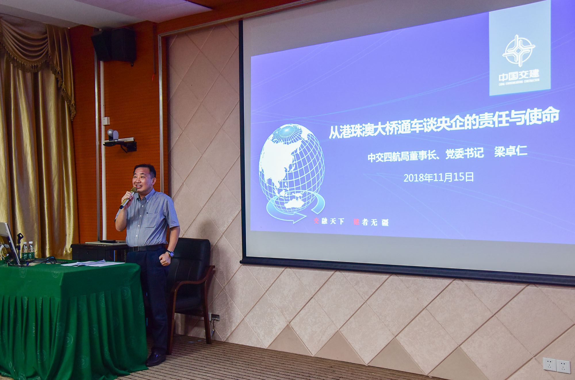11月15日,四航局董事長、黨委書記梁卓仁應(yīng)邀到中山大學(xué)海洋工程與技術(shù)學(xué)院專家講堂,作了題為《從港珠澳大橋通車談央企的責(zé)任與使命》專題講座。中山大學(xué)海洋工程與技術(shù)學(xué)院副院長楊清書及過百名師生參加了此次講座。