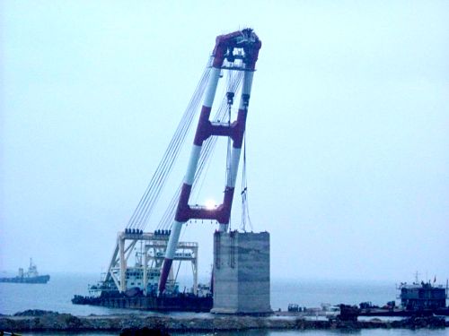 該項(xiàng)目自3月份復(fù)工以來(lái),在局和分公司的幫助下,根據(jù)施工實(shí)際,重新制定沉箱安裝方案,大膽采用新工藝,將新預(yù)制的11件沉箱平移至舊預(yù)制場(chǎng)出運(yùn),采用"粵工起9"船配合3000噸半潛駁安裝,并改良沉箱吊籠,于4月19日完成典型施工。