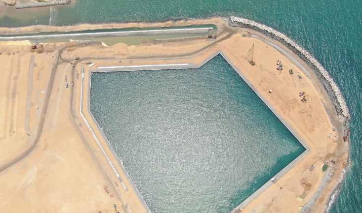 科倫坡港口城項目游艇碼頭外護岸完成方塊安裝