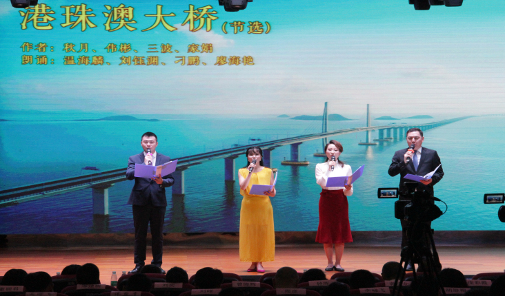 近日,四航局聯(lián)合社會各界在廣東省立中山圖書館成功舉辦《江山今更嬌》秋月專場大型詩歌朗誦演唱會,演繹“我和我的祖國”的深情,向新中國70華誕獻禮?;顒佑芍袊唤āV東省文聯(lián)、廣東省作協(xié)指導,中交四航局和廣東省朗誦協(xié)會、廣東省立中山圖書館、中國誦讀會廣東分會主辦,秋月詩社、中成國際、博研商學院承辦。廣東省文聯(lián)主席、中國美術(shù)家協(xié)會原副主席許欽松,廣東省委組織部原副部長羅東凱,廣東省委宣傳部精神文明辦副主任吳祖清,中交四航局副總經(jīng)理萬軍杰,廣東省朗誦協(xié)會會長史子興等嘉賓出席,300多名觀眾觀看了演出。