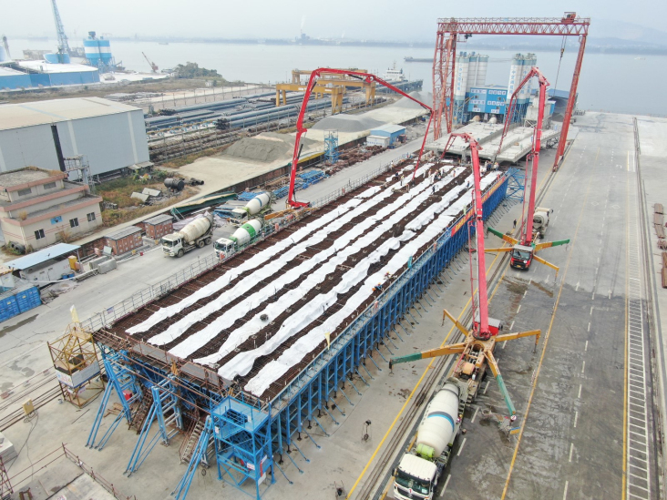 國(guó)內(nèi)最大預(yù)制箱梁澆筑完成