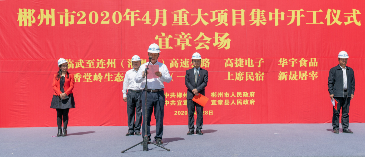 4月28日,臨連高速工程項(xiàng)目在宜章舉行開工儀式,郴州市宜章縣委副書記、縣長(zhǎng)張潤(rùn)槐,四航局副總經(jīng)理、總經(jīng)濟(jì)師周達(dá)培出席開工儀式。