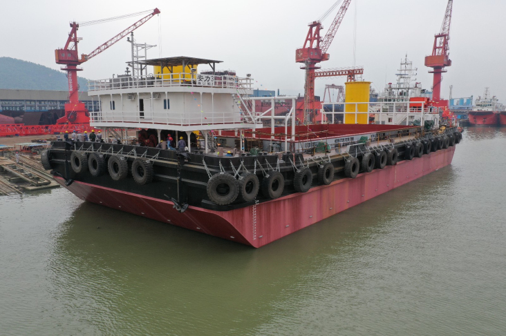 航通公司建造的65米箱型吊桿駁順利下水